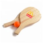 Frescobol Promocional, kit feito em madeira com 2 raquetes e 1 bolinha de borracha.