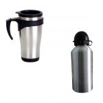 Caneca e squeeze para Brindes Personalizado: possui um squeeze e uma caneca, ambos produzidos em aço inox de excelente qualidade, sendo o squeeze com uma capacidade de 350 ML, Caneca com detalhes em preto e capacidade de 200 ML, Sugerido gravação a laser em cada item, envie-nos a sua logo marca para um layout virtual, sem custo.