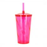 Copo de acrílico 550ml com canudo e detalhe espiral, copo inteiro colorido e canudo transparente.