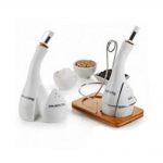 Galheteiro Personalizado Produzido em porcelana, com armazenamento para vinagre, pimenta, azeite e sal. Em formatos anatômicos os recipientes se encaixam para que se acomodem bem na base produzida em bambu com detalhes em aço inox, os materiais são todos de ótima qualidade, que garantem uma alta durabilidade e sofisticação. Em busca de Galheteiro Personalizado com a sua logo marca? Aqui na Sacola Ecológica você tem as melhores opções.