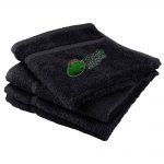 Toalha promocional preta: desenvolvido em tecido de fios penteado com gramatura de 3.2m.