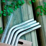 KIT CURVO Canudos Personalizados, com quatro canudos de aço e escova.