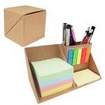 Bloco de Anotações Cubo com Post It,Cubo de papel reciclado que ao abrir se torna um bloco de post it com 5 cores e um porta canetas.