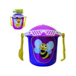 Baldinho de Praia, produzido em plástico e contém: baldinho com alça, peneirinha, pazinha, garfinho, peixinho, estrelinha, conchinha.