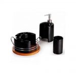 Brindes Sofisticados para Banheiro em formato de meia lua e cilíndrico. Produzido em porcelana, na cor preta, o que dar um ar maior de sofisticação. O Kit para banheiro vem com uma base em bambu de excelente qualidade com detalhes em aço inox, com pegadores que envolvem o recipiente que adentra as escovas e o creme dental, porta algodão em porcelana na cor preta e um porta sabonete liquido feito também em porcelana na cor preta com bico dosador de aço inox. Procurando Brindes Sofisticados Conjuntos para Banheiro que seja personalizado com a sua logo marca? Então certamente aqui na Sacola Ecológica é o seu lugar.