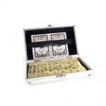 Jogo de Dominó na Maleta, personalizado a laser ou uv colorido, produzido todo em metal cai e peças. Promova a sua marca com brindes especiais e tenha a fidelidade do seu cliente por muito mais tempo.