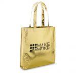 Sacolas de TNT Metalizadas, desenvolvida com costuras reforçadas para a maior segurança. Sacolas em TNT Promocionais Metalizadas disponível nas cores: ouro, prata, vermelho, azul, verde a silk com uma cor incluso para visibilidade do seu produto ou de sua empresa no contato direto com o consumidor.