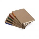Kit Bloco de Anotações, multiúso em couro sintético com Caneta na caixinha nas cores laranja, preto, e vermelho.