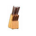Kit de Facas Personalizado, produzido em aço inox e bambu de alta qualidade e ecologicamente correto. O conjunto de facas vem acompanhado de um lindo estojo também ecologicamente correto, com zíper na cor marrom. Os itens que vem dentro do estojo são: uma faca de bambu, uma faca para fatiar e picar de bambu, uma faca para corte de pães de bambu, uma chaira, uma faca para fatiar e um garfo.