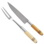 Conjunto de Garfo e Faca para Churrasco, Produzido em aço inox com acabamento em bambu de reflorestamento de excelente qualidade.