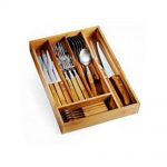 Conjunto de Talheres com Gaveteiro, todos os talheres são produzidos em aço inox com fino acabamento em bambu de reflorestamento. Os talheres vês em armazenados em Porta-Talher de gaveta produzido também em bambu de reflorestamento.