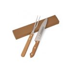 Kit de Facas para Presente produzido em Bambu e aço inox de alta durabilidade e excelência. Os itens vêm envoltos de um lindo estojo com zíper na cor marrom.