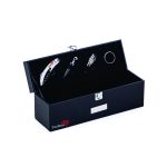 Kit Vinho Couro, contendo saca-rolha, tampa, anti-gotejador todos acondicionados em embalagem redonda de couro sintético preto ideal para pequenos espaços. Brinde requintado que agrada pessoas de bom gosto. De fato é um ótimo produto para oferecer de brinde aos seus clientes mais seletos.