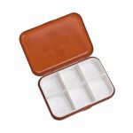 O Porta comprimido pequeno possui oito divisórias, sete delas escritas em relevo os dias da semana e a última escrito “reserva” Verso liso.