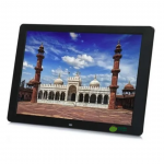 Porta Retrato Digital Preto, com 13 polegadas e tela em lcd, resolução 1280×800. Aceita vários formatos de video e tem saída de áudio. Possui (iluminação) LED nas laterais.