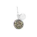 Brincos Swarovski Crystal Fine Rocks, os brincos são decorados com cristais de tonalidades inspiradas nas pedras encontradas na natureza. O produto está disponível em duas cores e em formato circular, pode ser personalizado por gravação a laser para auxiliar na identificação de colaboradores e parceiros da empresa.
